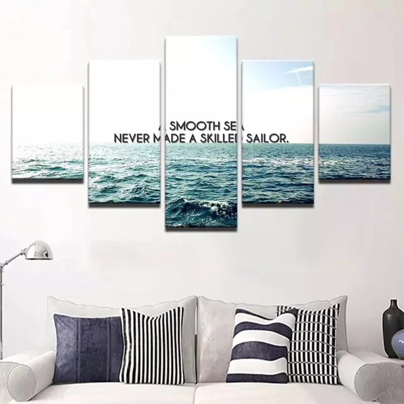 Nordic Style Modular Hd Printed 5 Panel Sky Sea Sentence Posters Horizon Outlet Living Room Furniture