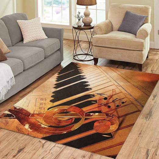 Amazon Com Semtomn Area Rug 3 X 5 Beige Jazz Piano Keys Vintage Jazz Living Room Decor